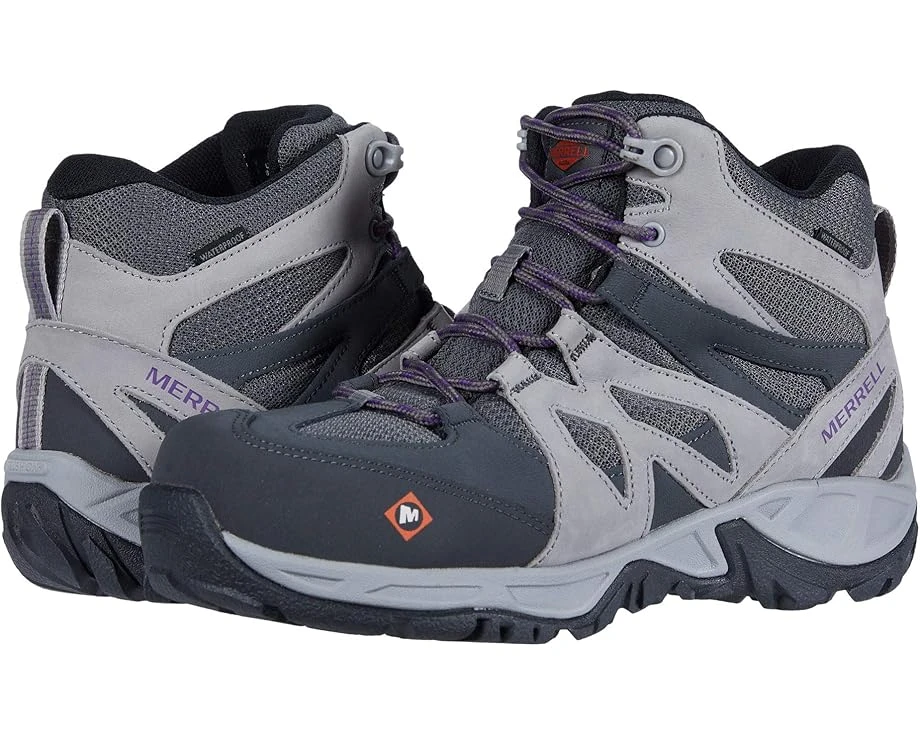 The Merrell® Work Siren Mid Waterproof Alloy Toe shoe is the ideal choice for safety toe protection, weather readiness and slip resistance that lasts even on the toughest jobs.SKU: #9389502Part of the Merrell Work Collection.Style numbers: J099356-001 (Black), J099326-200 (Brindle/Boulder), and J099328-010 (Charcoal/Paloma).Alloy safety toe meets ASTM F2413-18 I/75 C/75 EH (Electrical Hazard) safety standards.Waterproof nubuck and breathable mesh upper.M Select™ DRY waterproof membrane keeps feet protected from outside elements. Bellows tongue helps keep debris out. Lace-up closure system with non-metallic hardware and a heel pull tab.Protective, abrasion-resistant rubber toe cap. Breathable mesh lining offers a great in-shoe feel. COMFORTBASE™ contoured footbed with breathable foam cradles your foot in all-day comfort.Air cushioning in the heel absorbs impacting shock and adds stability. Molded nylon arch shank supplies flexible support. Outsole is oil and slip resistant and is Mark II tested. M Select™ GRIP rubber outsole with 5mm lug depth offers excellent traction and grip on various surfaces. Heat-resistant outsole provides protection for brief periods of direct contact with temperatures that meet or exceed 500°F.Imported. Product measurements were taken using size 8.5, width M. Please note that measurements may vary by size.Weight of footwear is based on a single item, not a pair.Measurements: